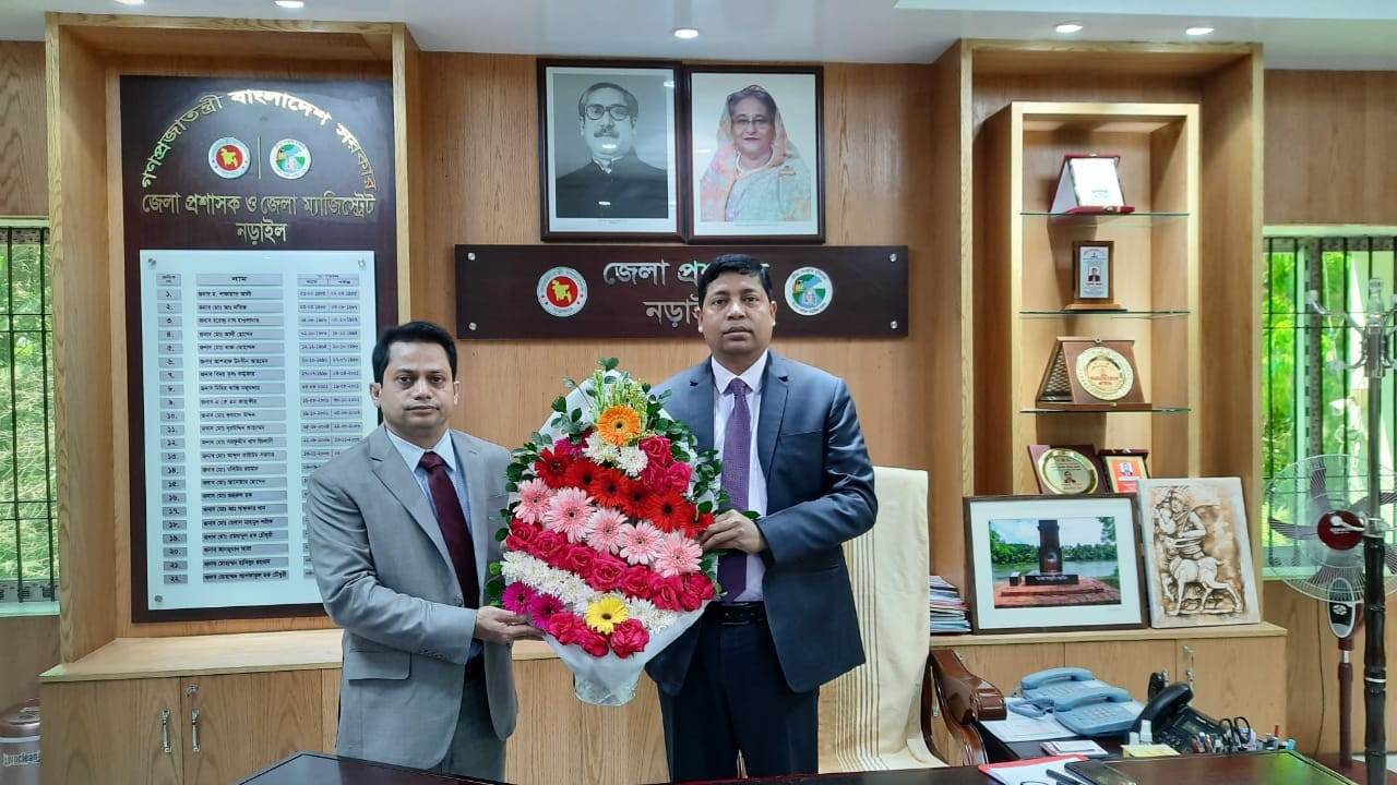 নড়াইলে নবাগত জেলা প্রশাসক মোহাম্মাদ আশফাকুল হক চৌধুরী দায়িত্ব গ্রহন করেছেন বিদায়ী জেলা প্রশাসক মোহাম্মদ হাবিবুর রহমানের কাছ থেকে।