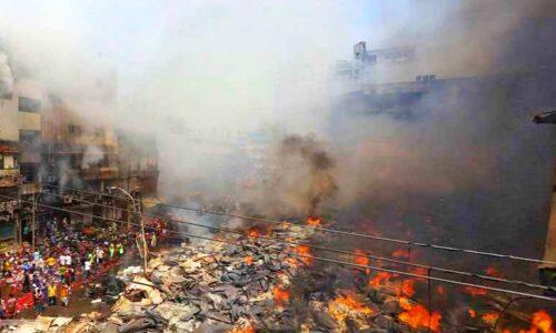 গত মঙ্গলবার বঙ্গবাজারের ভয়াবহ আগুনে প্রায় পাঁচ হাজার দোকান পুড়ে যায়। আগুনে প্রায় এক হাজার কোটি টাকার ক্ষতি হয়েছে বলে দাবি ব্যবসায়ীদের।