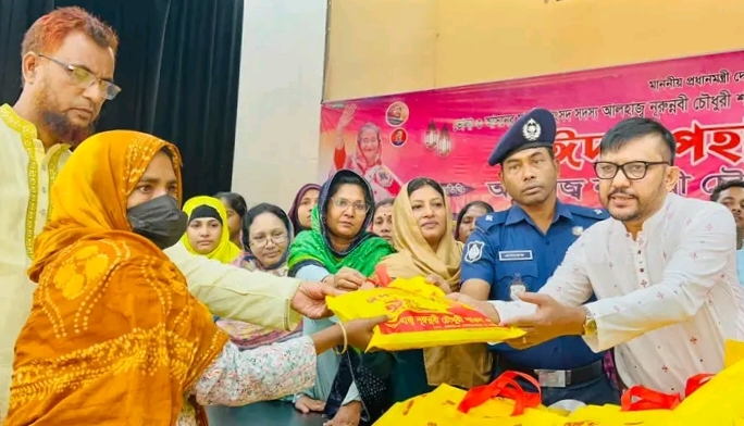 লালমোহনে অসহায় হতদরিদ্রদের মাঝে ঈদ উপহার বিতরণ করলেন-এমপি শাওন