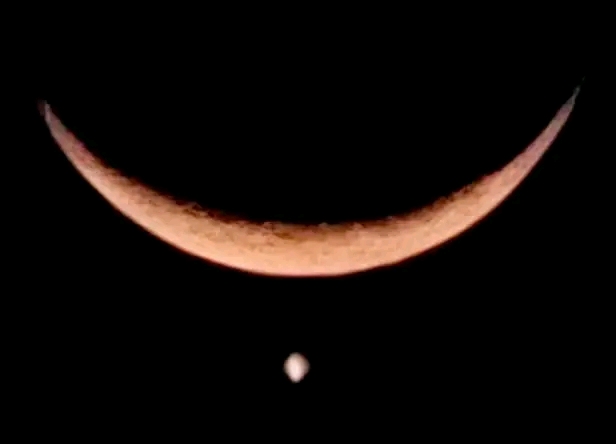 অমাবস্যার দিন তিনেক পরের চাঁদের মাত্র ৯ শতাংশ ছিল দৃশ্যমান। সেই চাঁদের কাস্তের পাশে সন্ধ্যাতারার উপস্থিতি তৈরি করল অনুপম দৃশ্যকাব্য। মুহূর্তে ভাইরাল হয়ে গেছে ছবিগুলো। সোশ্যাল মিডিয়ায় সকলেই আপলোড করছেন ক্যামেরাবন্দি চাঁদ ও শুক্রের ছবি। এই মাসের ২৫ থেকে ৩০ পর্যন্ত রাতের আকাশে দেখা যাবে আরও ম্যাজিক।
