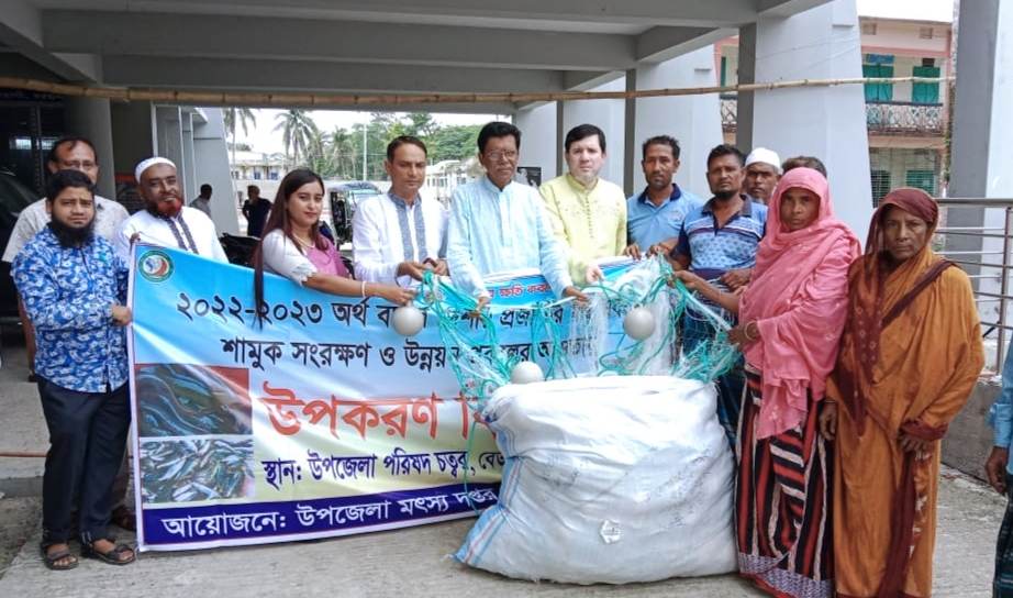 বেতাগীতে জেলেদের মাঝে ছান্দি জাল বিতরণ