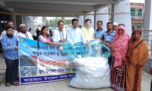 বেতাগীতে জেলেদের মাঝে ছান্দি জাল বিতরণ